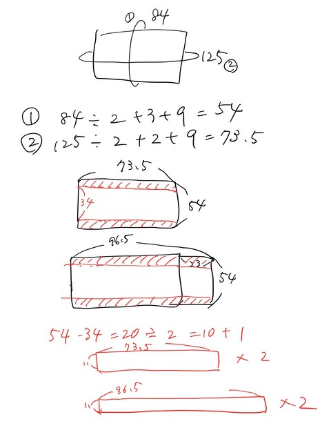 厳密には36cm幅あるんですけど、ほつれがひどいので34cmで普通の晒の幅で計算して