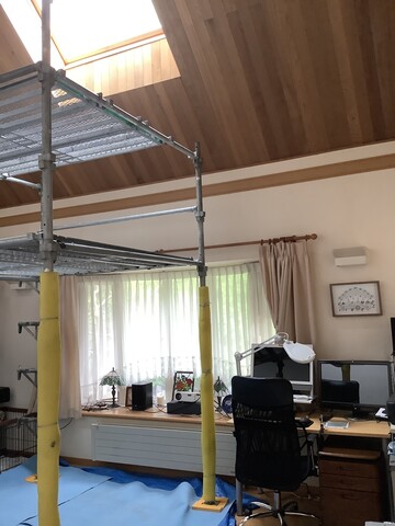 うちの狭いリビングにみるみる出来上がる足場に見惚れてしまいました。