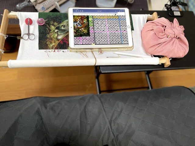 【刺繍台】昇降テーブルと柔らかい重石を使ってバージョンアップ