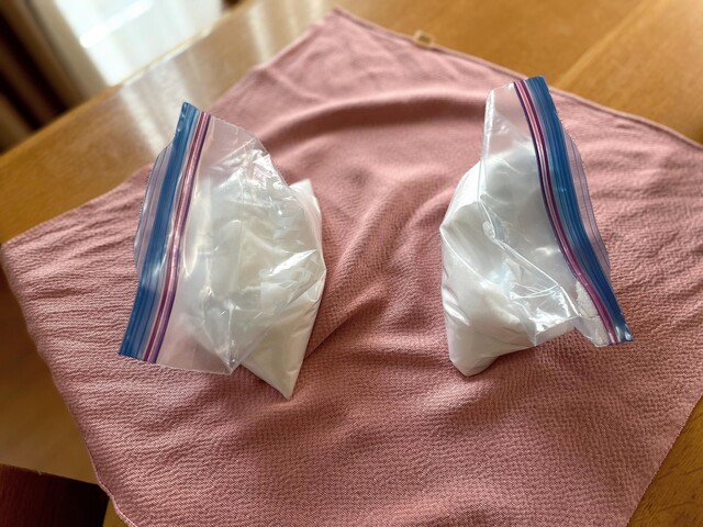 ひとつの袋でも中は塩なので溝は作れないこともないですが、最初からわかれていたらもっと楽になると思います。