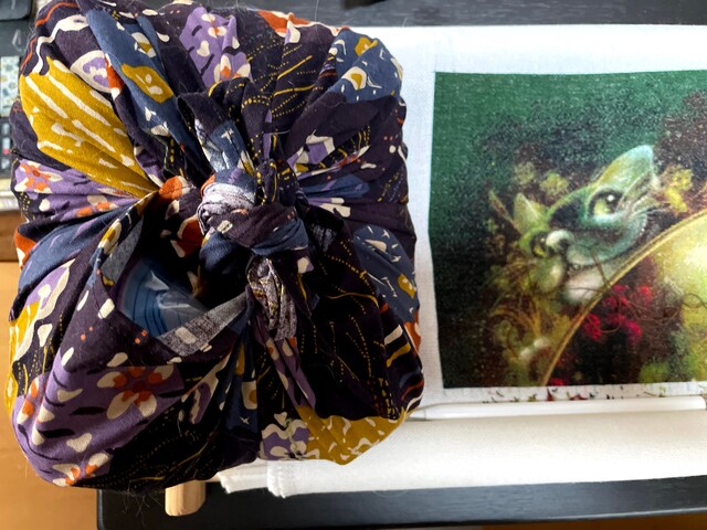 【刺繍枠スタンド】柔らかい重石作ってみて、新たな発見、結び目がいい仕事します