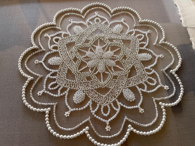 【オートクチュール刺繍】ドイリー2点、完成 2021年02月24日 09:00 課題のドイリー完成!うっとり教室に行ってからドイリーに仕立てます。ビーズにうっとり綺麗だわ~縁のウネウネに使ったビーズが途中足りなくなって苦労しましたが後から付け足しでなんとかごまかした。このデザインの一番の難関はやっぱりラメ糸だね。これは同じ課題をやっている他のお友達も同じだったみたい。こちらはパールのY字刺しがパシッと決まり気持ち良く刺せました。花の形のスパンコールの可愛いこと! ウネウネが先か枠が先かやってみたら、枠を刺してからウネウネの方が崩れなかったようです。 「オートクチュール刺繍」カテゴリの最新記事 < 前の記事次の記事 > コメント コメントフォーム 名前 コメント 記事の評価 リセット リセット 顔 星 情報を記憶 コメントを投稿する