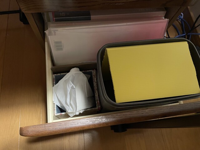 鼻炎持ちの私はこのティッシュとゴミ箱セットが必須。