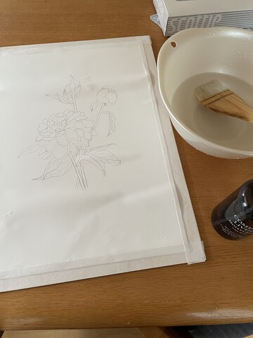 下書きをうつした後に紙の裏だけを濡らして水貼り