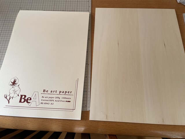 板、紙、スケッチブックを重ねてみる。