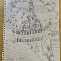 こんにちは、あすかです。やっと自由課題の素材決めました。が、選んだ風景が意外と難しかった屋根地獄と窓地獄更にメインとなる正面の建物も特殊な形で斜め角度視点は上からデッサンやっと描けた水彩紙に写します 写すときに斜めだったのか窓枠が垂直じゃない嘘でしょ三 ...