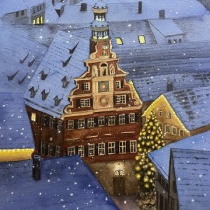 【水彩画】ドイツのクリスマス風景完成